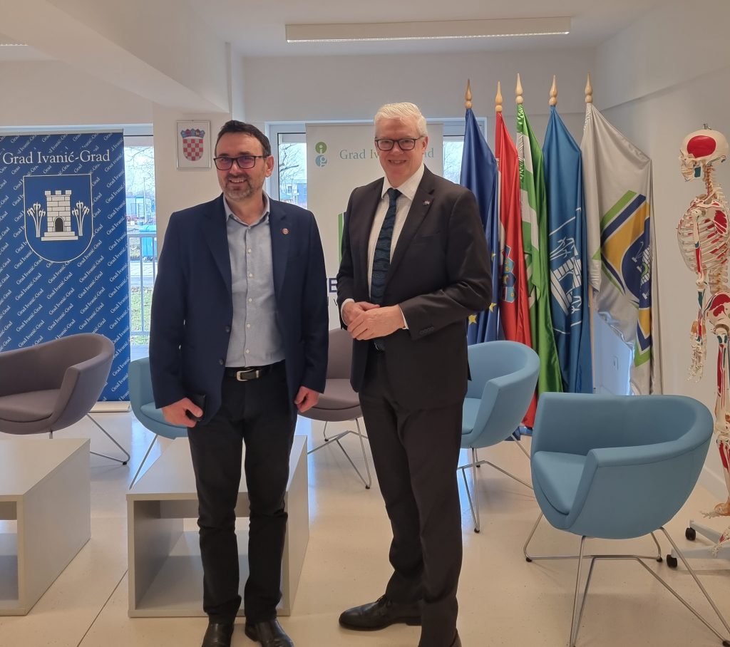 30. siječnja 2026. Veleučilište Ivanić-Grad posjetio je veleposlanik Australije u Republici Hrvatskoj, Richard Rodgers, u pratnji službenice za konzularne poslove i javnu diplomaciju Dijane Grahovac. Posjetili su naše veleučilište na inicijativu ravnateljice Srednje škole Ivan Švear i predsjednice Upravnog vijeća Veleučilišta Ivanić-Grad Josipe Ilić, dipl. oec., pred. Veleučilište i studijske programe predstavili su studenti stručnog diplomskog studija Protetika, ortotika i robotika u fizioterapiji Ana Pearl Burton i Lukas Oštrec. U opuštenom razgovoru razmijenile su se korisne informacije o obrazovnim sustavima Republike Hrvatske i Australije te je dekan doc. dr. sc. human. Mile Marinčić, prof. struč. stud. potaknuo inicijativu za daljnju suradnju.
