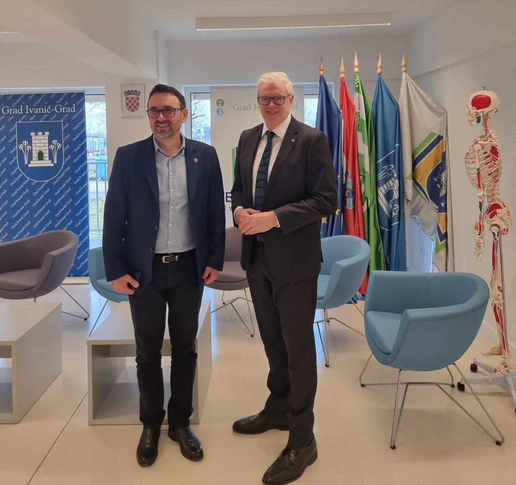 30. siječnja 2026. Veleučilište Ivanić-Grad posjetio je veleposlanik Australije u Republici Hrvatskoj, Richard Rodgers, u pratnji službenice za konzularne poslove i javnu diplomaciju Dijane Grahovac. Posjetili su naše veleučilište na inicijativu ravnateljice Srednje škole Ivan Švear i predsjednice Upravnog vijeća Veleučilišta Ivanić-Grad Josipe Ilić, dipl. oec., pred. Veleučilište i studijske programe predstavili su studenti stručnog diplomskog studija Protetika, ortotika i robotika u fizioterapiji Ana Pearl Burton i Lukas Oštrec. U opuštenom razgovoru razmijenile su se korisne informacije o obrazovnim sustavima Republike Hrvatske i Australije te je dekan doc. dr. sc. human. Mile Marinčić, prof. struč. stud. potaknuo inicijativu za daljnju suradnju.